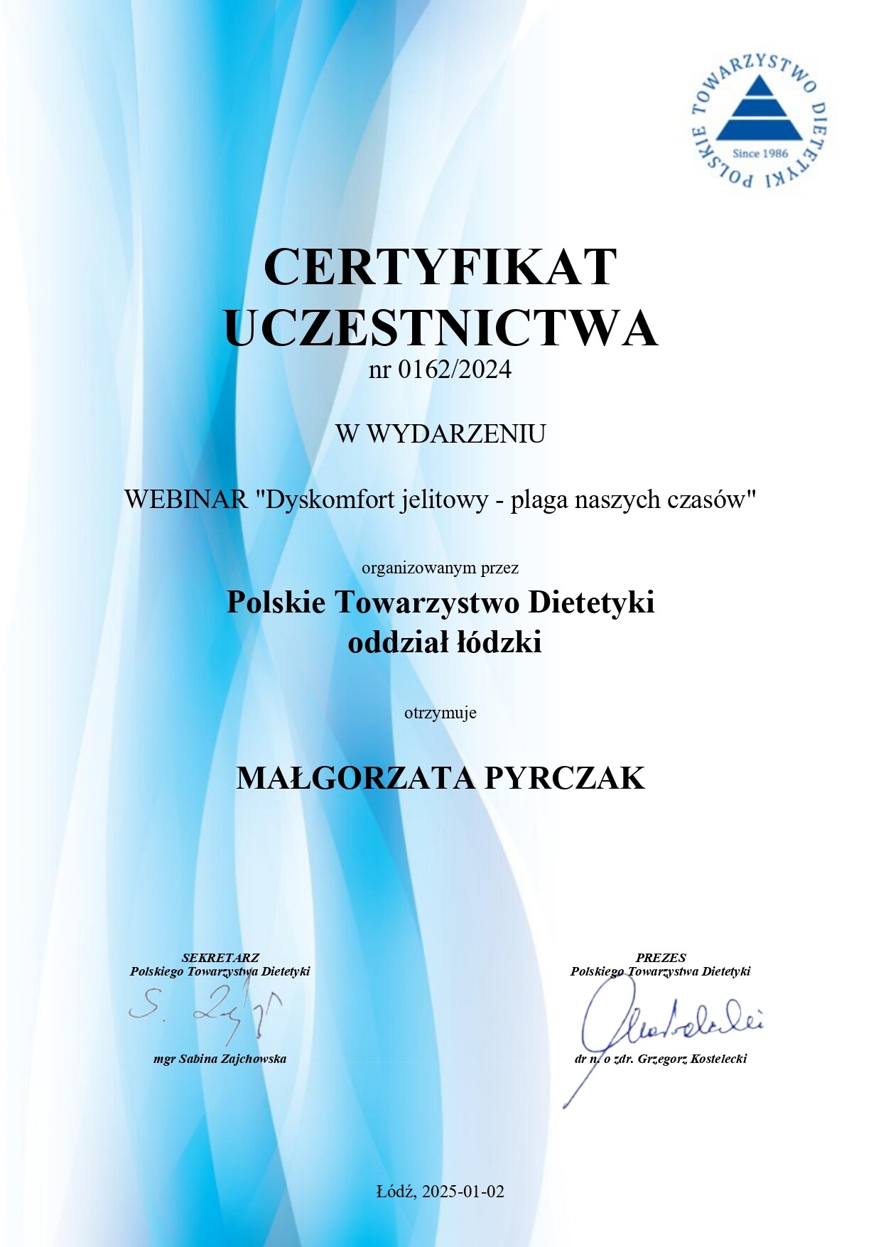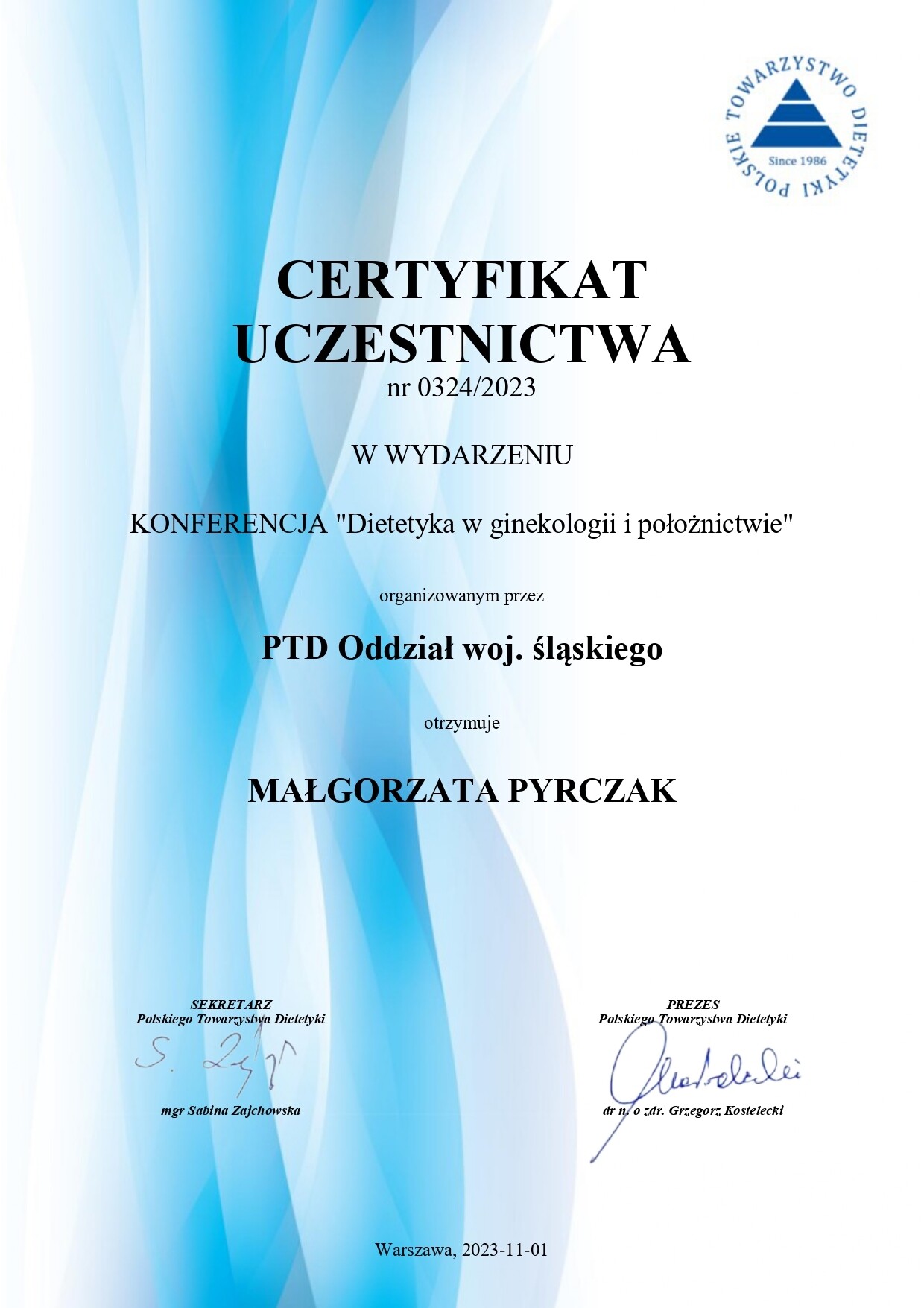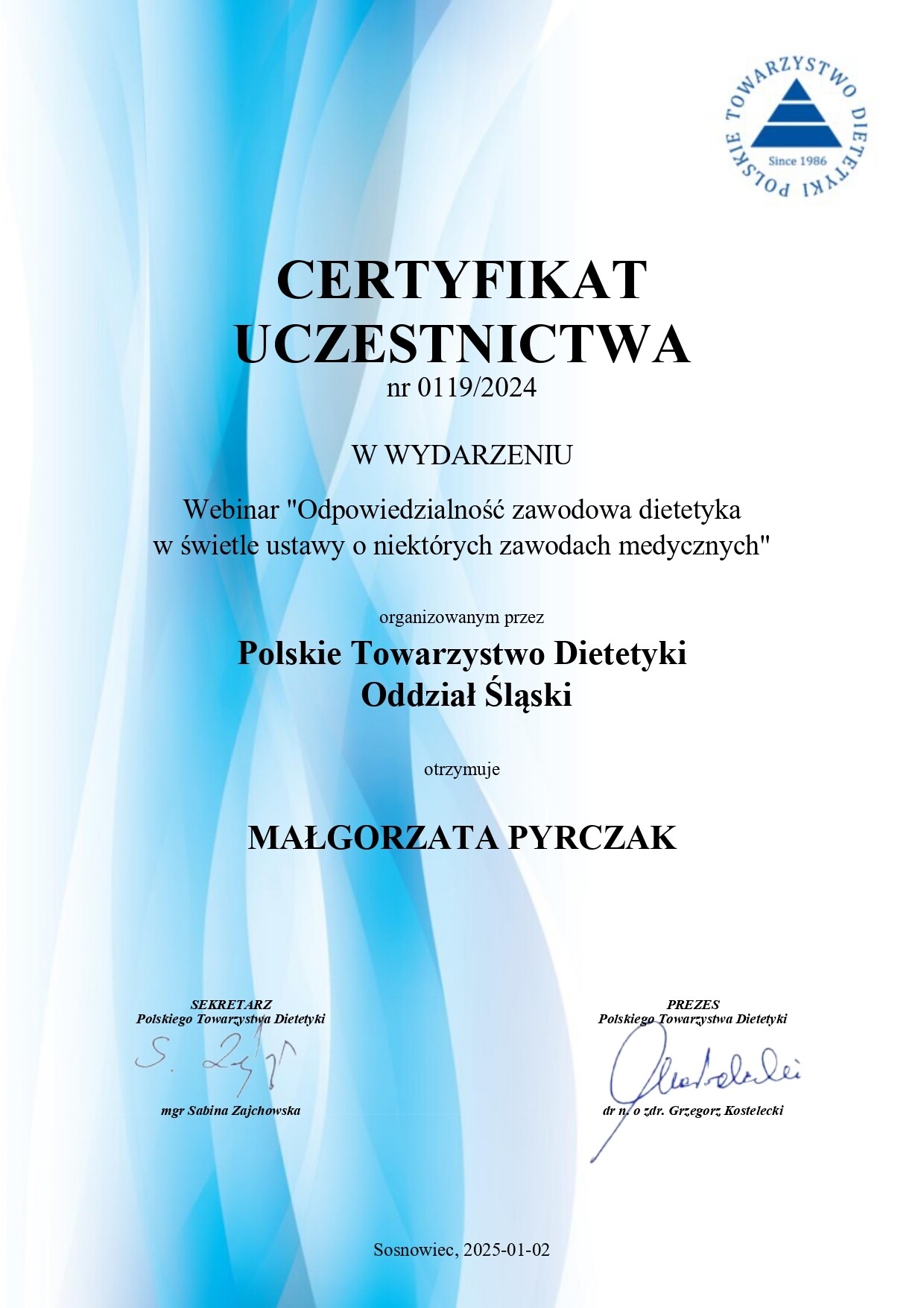 Regularnie uczestniczę w konferencjach naukowych dotyczących dietetyki i psychodietetyki, aby być na bieżąco w mojej pracy z najnowszymi badaniami i metodami.